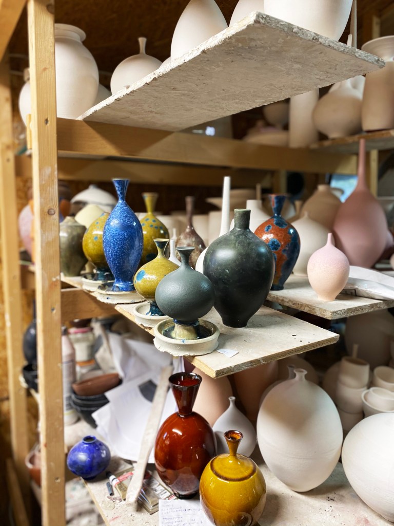 In the afternoons Isak Isaksson works with glazes, the most intellectual of the elements in the creation of a ceramic object. A great interest in chemistry is the basis for research into how different components react together on different types of clay, in different types of firings with or without air supply – and during different cooling rates. In contrast to the continuous work with classic vessel shapes, the crystal glazes are a field for constant experimentation for Isak Isaksson: “The crystalline glazes are a world of their own, infinite. The possibilities for variation are breathtaking. Every time I try or discover something new, new opportunities and ideas open up in my mind.”