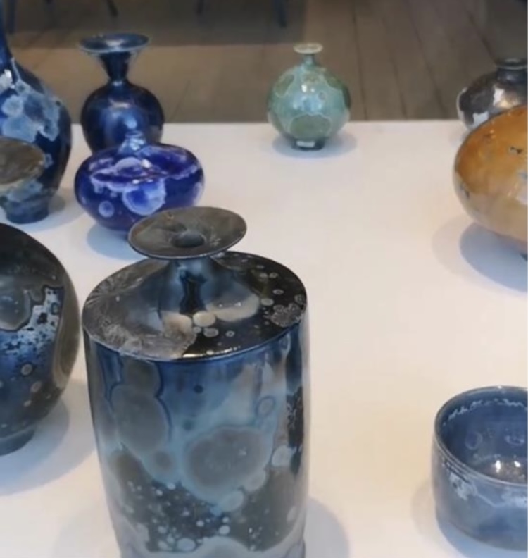 At a window exhibition at Konsthantverkarna in September 2020, Isak Isaksson showed bowls and vases in a variety of different types of crystalline glazes. The shapes were recognizable from before: rich variations on the classic vessels that Isaksson favors and is faithful to. The glazes, on the other hand, pointed to something new – large and small crystals in different shapes and colors emanating as small explosions from the works. The objects had a joy of color and richness of variation that marked a new phase in Isaksson’s art.