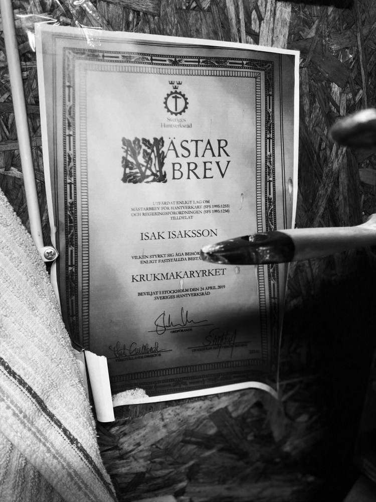 Isaksson’s turntable stands by a window in the workshop. It is electrically powered with a mechanic that makes it stop immediately when Isaksson releases the pressure on the accelerator pedal. “I have worked with different types of turntables but this is my favorite. The most common wheels continue to spin a few turns when you release the throttle, but it does not suit me. I want full control,” describes Isaksson. The most regularly used tools in the workshop feel almost like extensions of his own fingers.