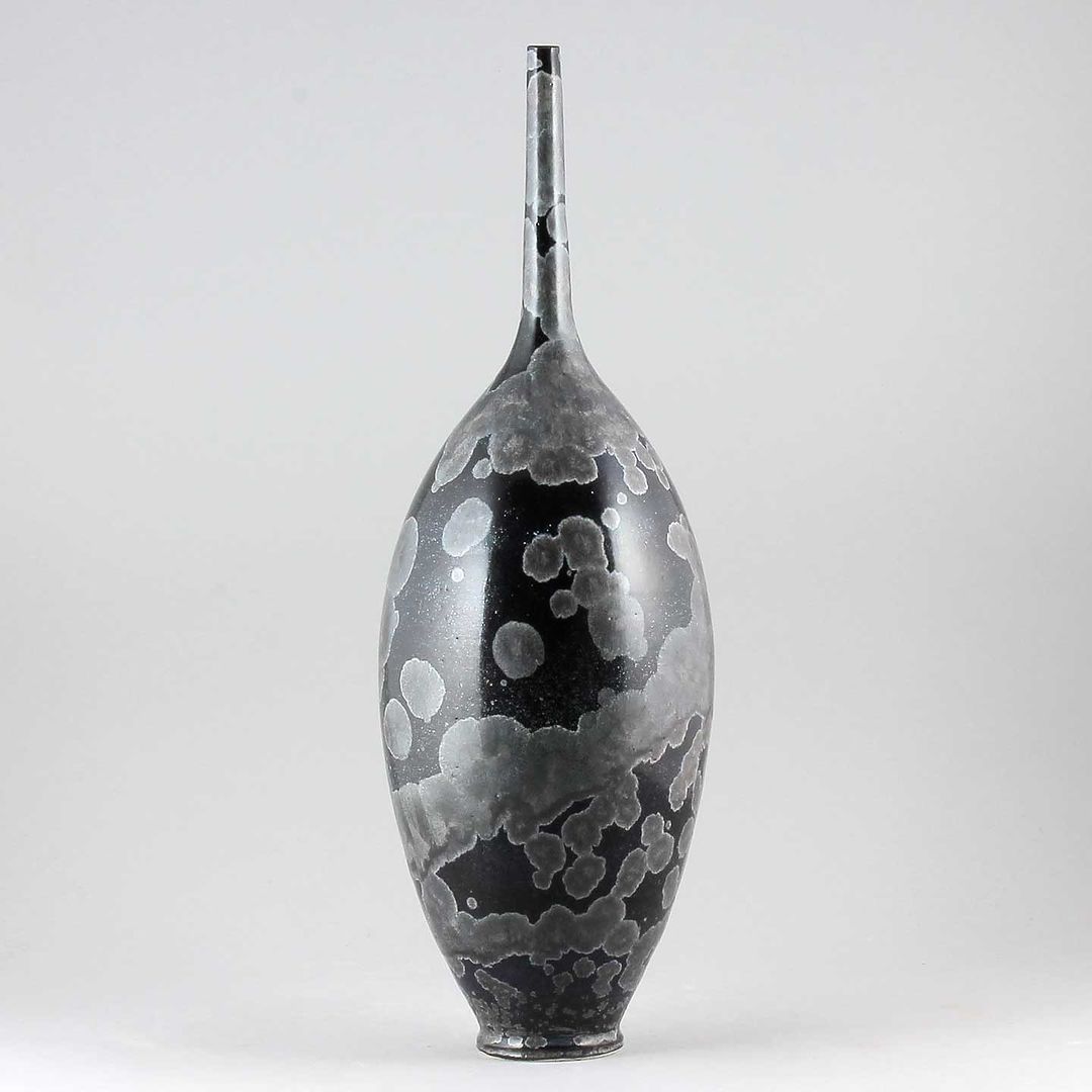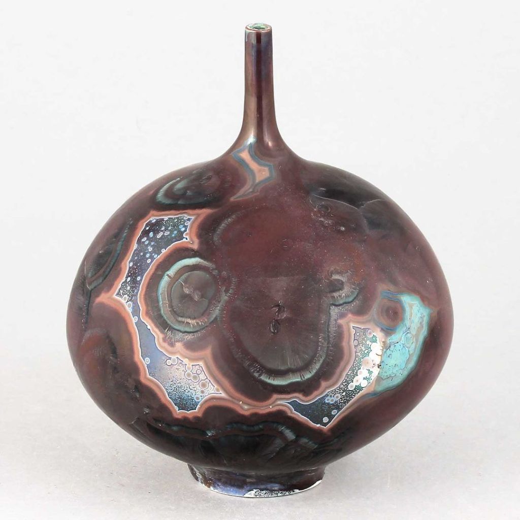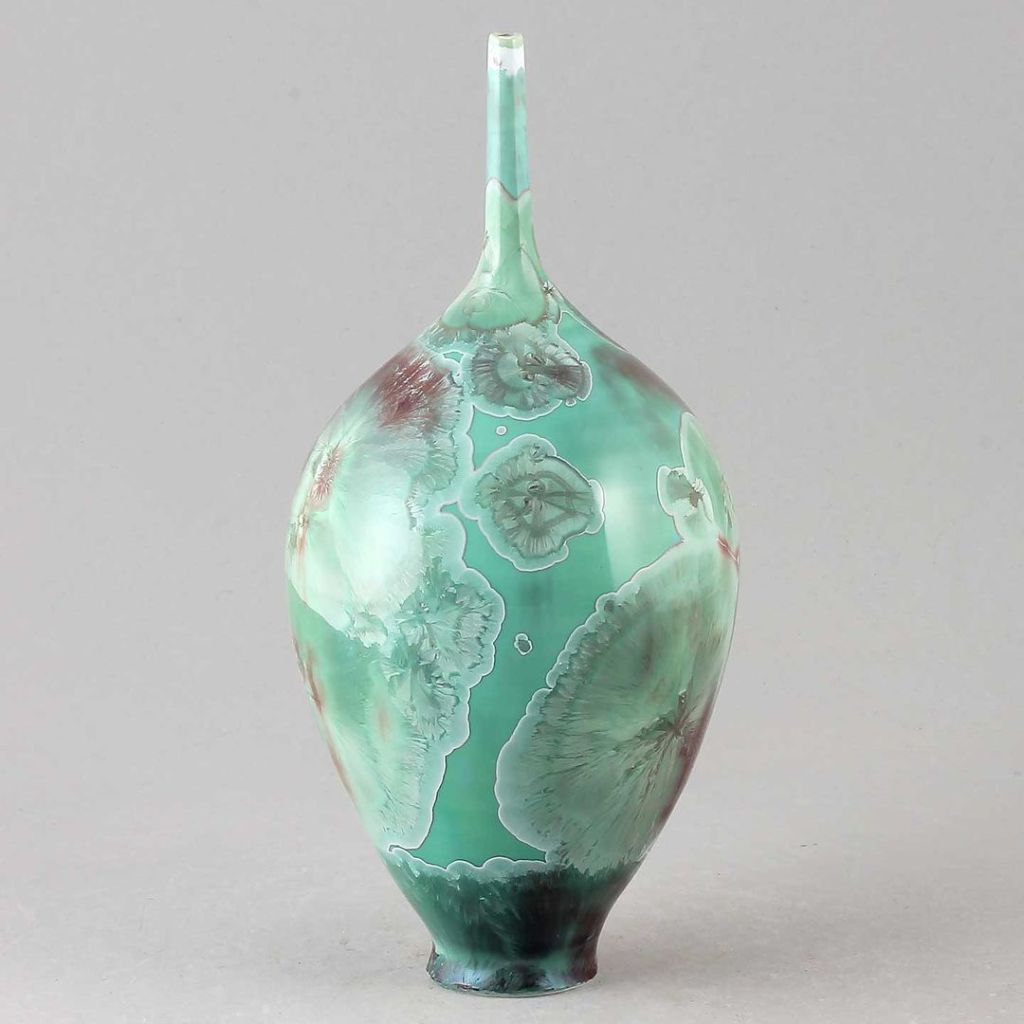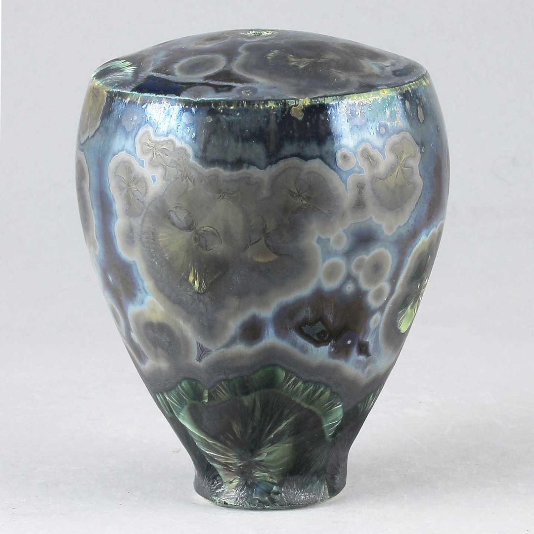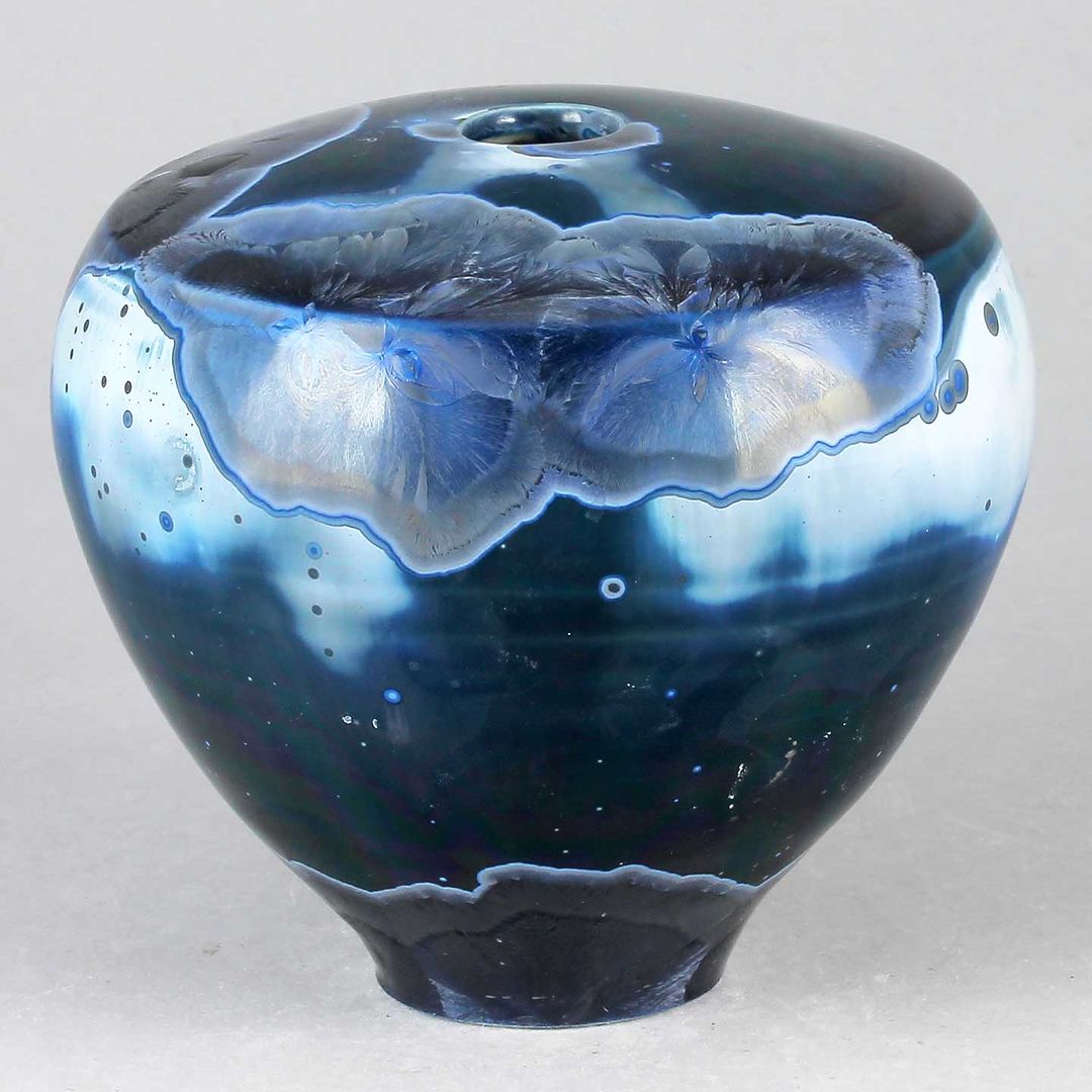 Isak Isakssson’s objects feature an interesting combination of classic, soft-spoken vessel shapes and unique, expressive crystalline glazes. The works are a result of a process that includes the ingredients of craftsmanship, artistic considerations, chemistry and fire. Here some examples of different shapes and glazes. More info about the specific crystalline glazes here.