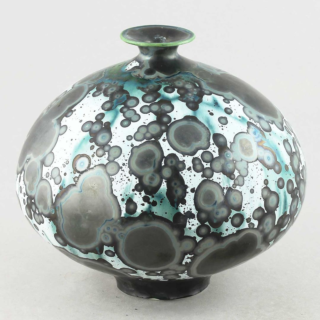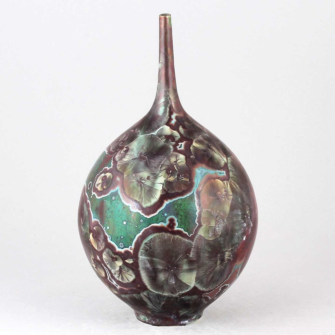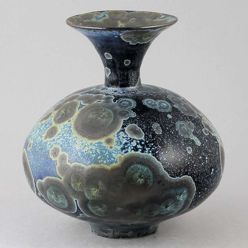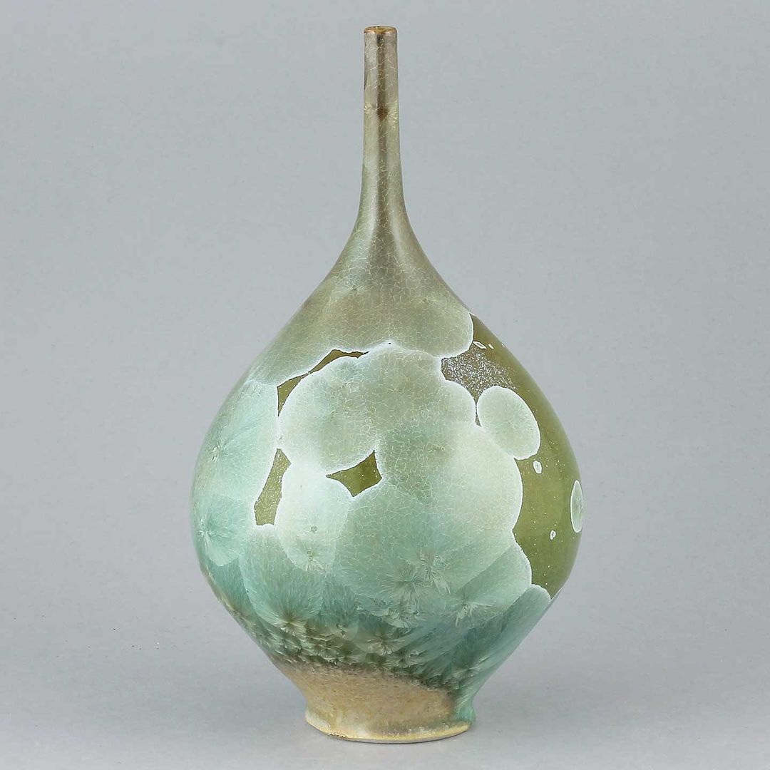 Isak Isakssson’s objects feature an interesting combination of classic, soft-spoken vessel shapes and unique, expressive crystalline glazes. The works are a result of a process that includes the ingredients of craftsmanship, artistic considerations, chemistry and fire. Here some examples of different shapes and glazes. More info about the specific crystalline glazes here.