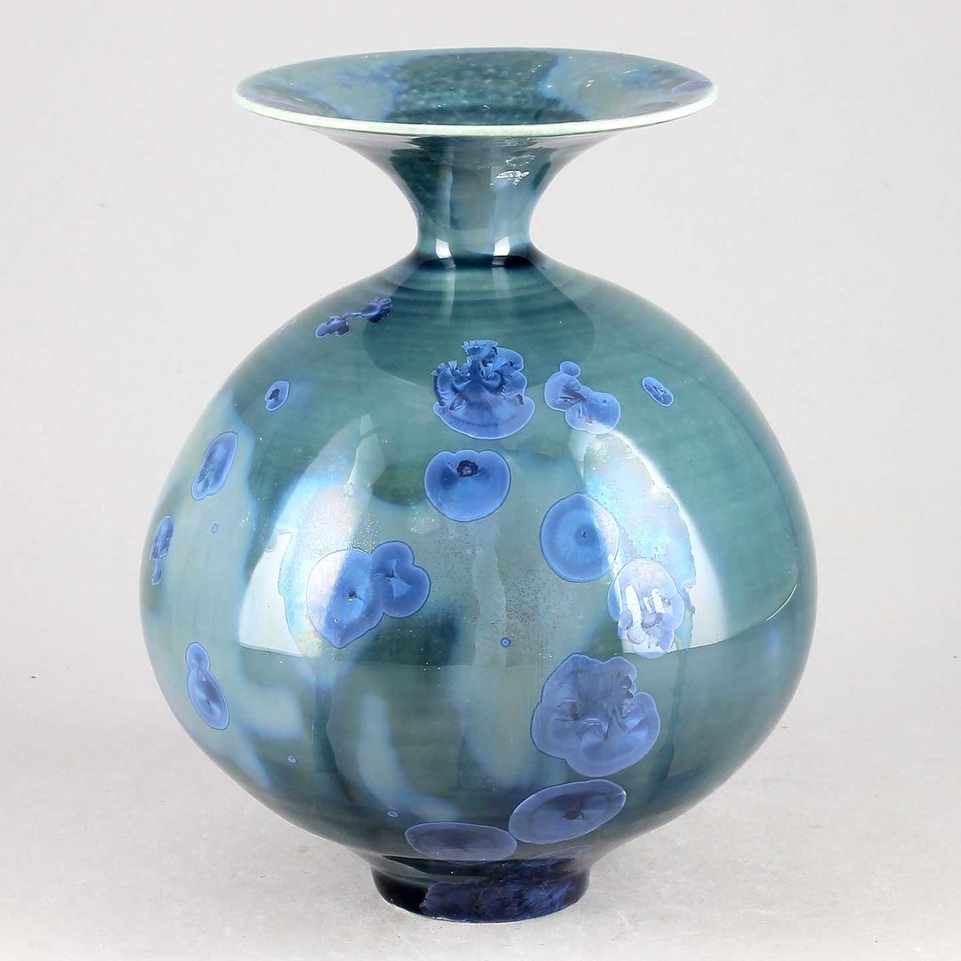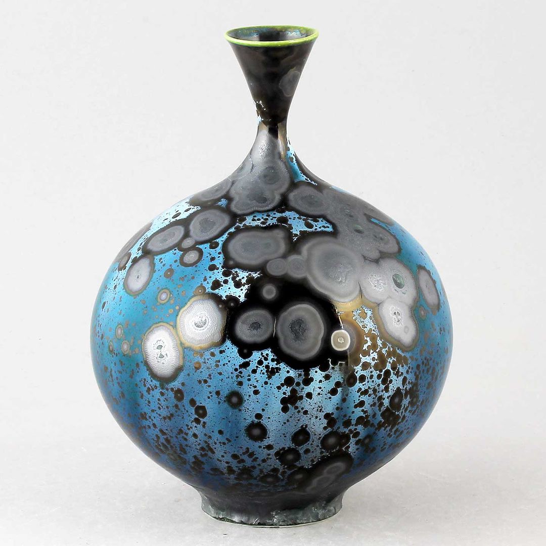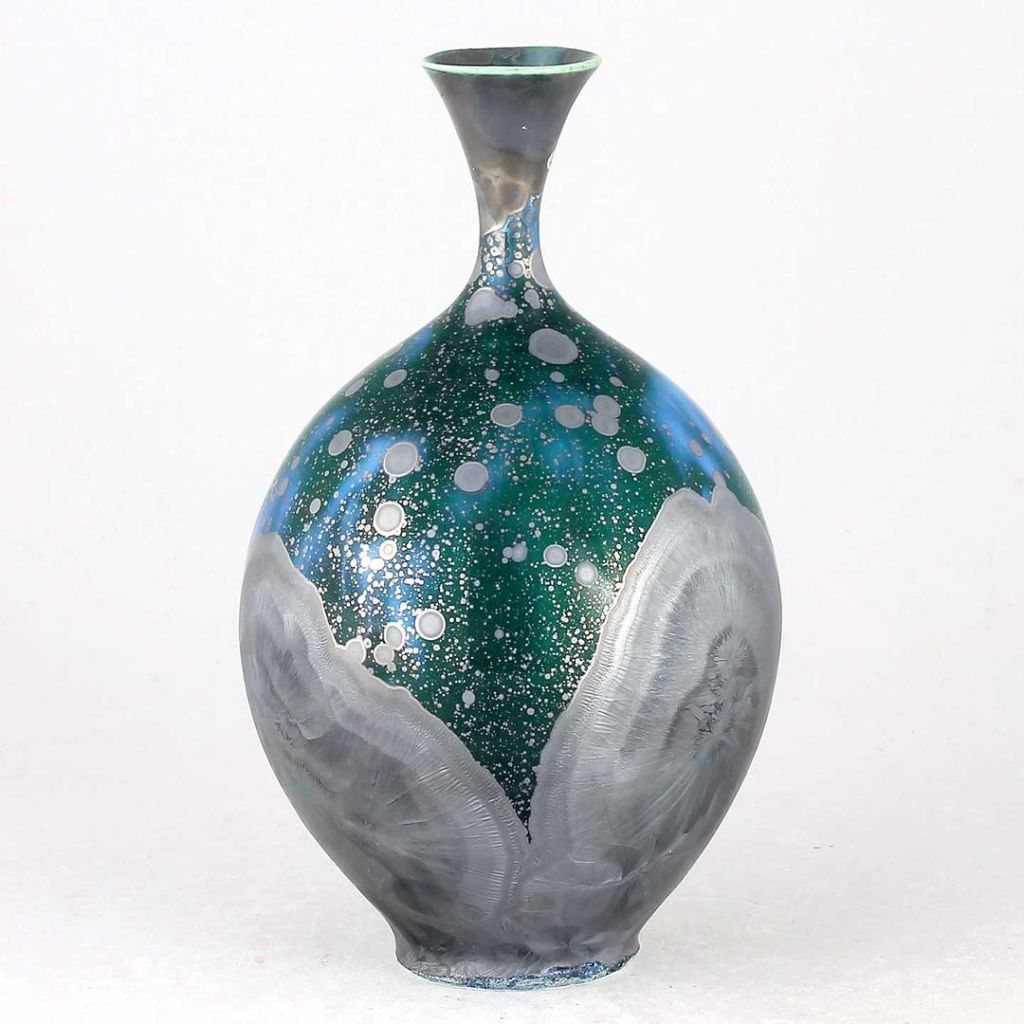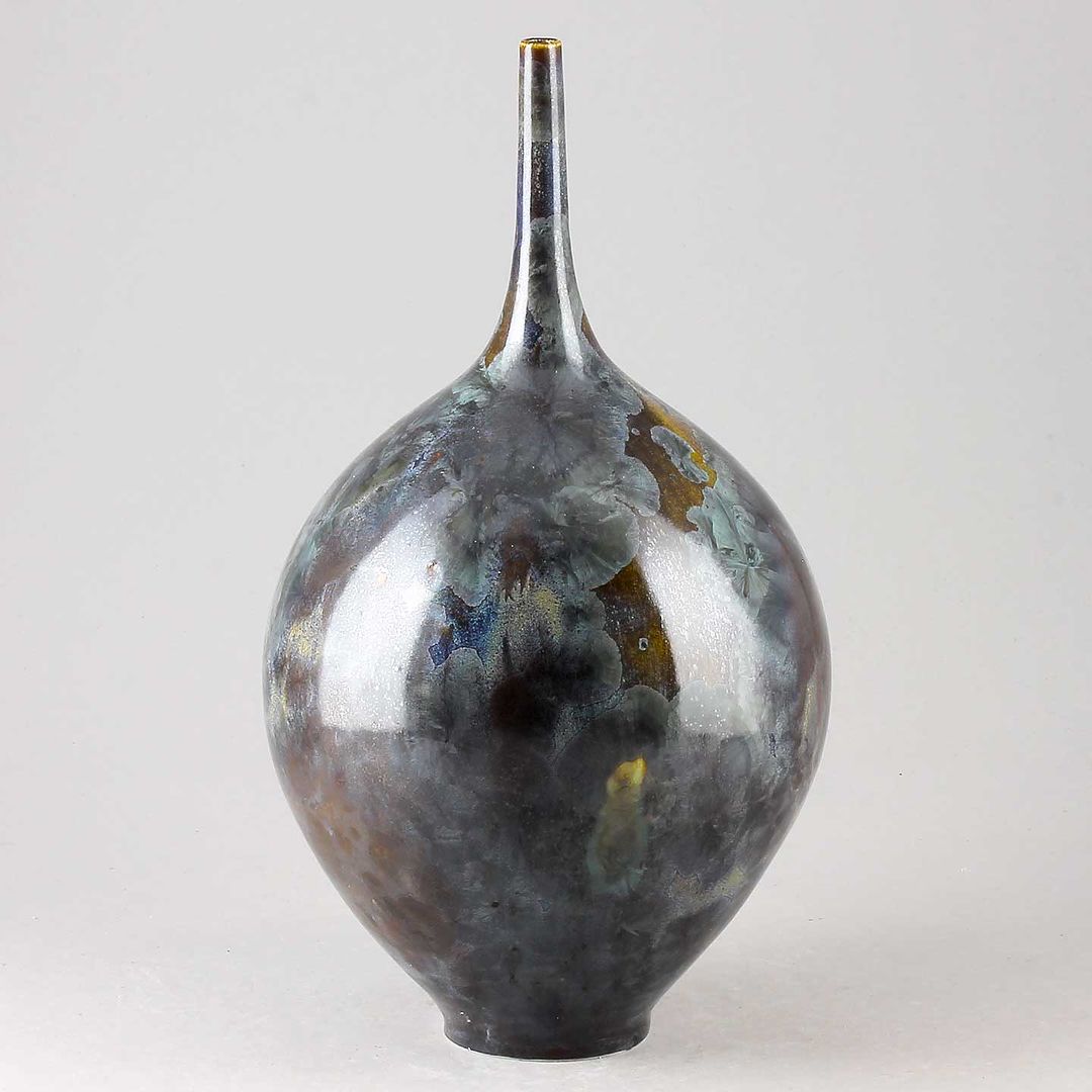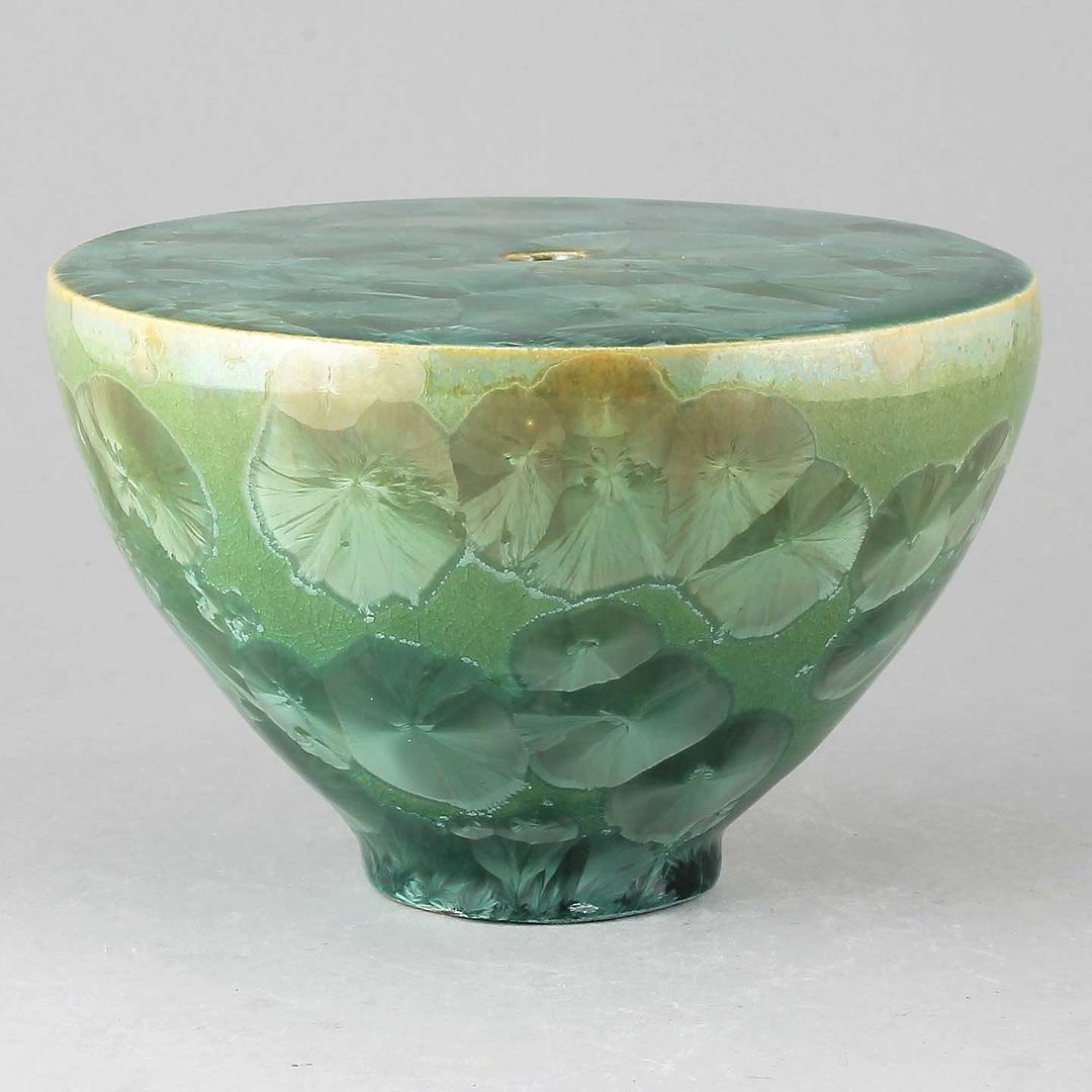 Isak Isakssson’s objects feature an interesting combination of classic, soft-spoken vessel shapes and unique, expressive crystalline glazes. The works are a result of a process that includes the ingredients of craftsmanship, artistic considerations, chemistry and fire. Here some examples of different shapes and glazes. More info about the specific crystalline glazes here.
