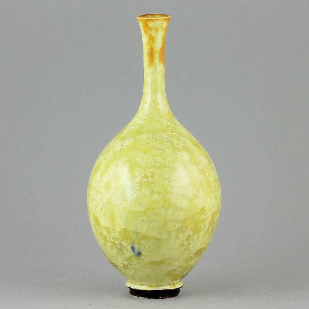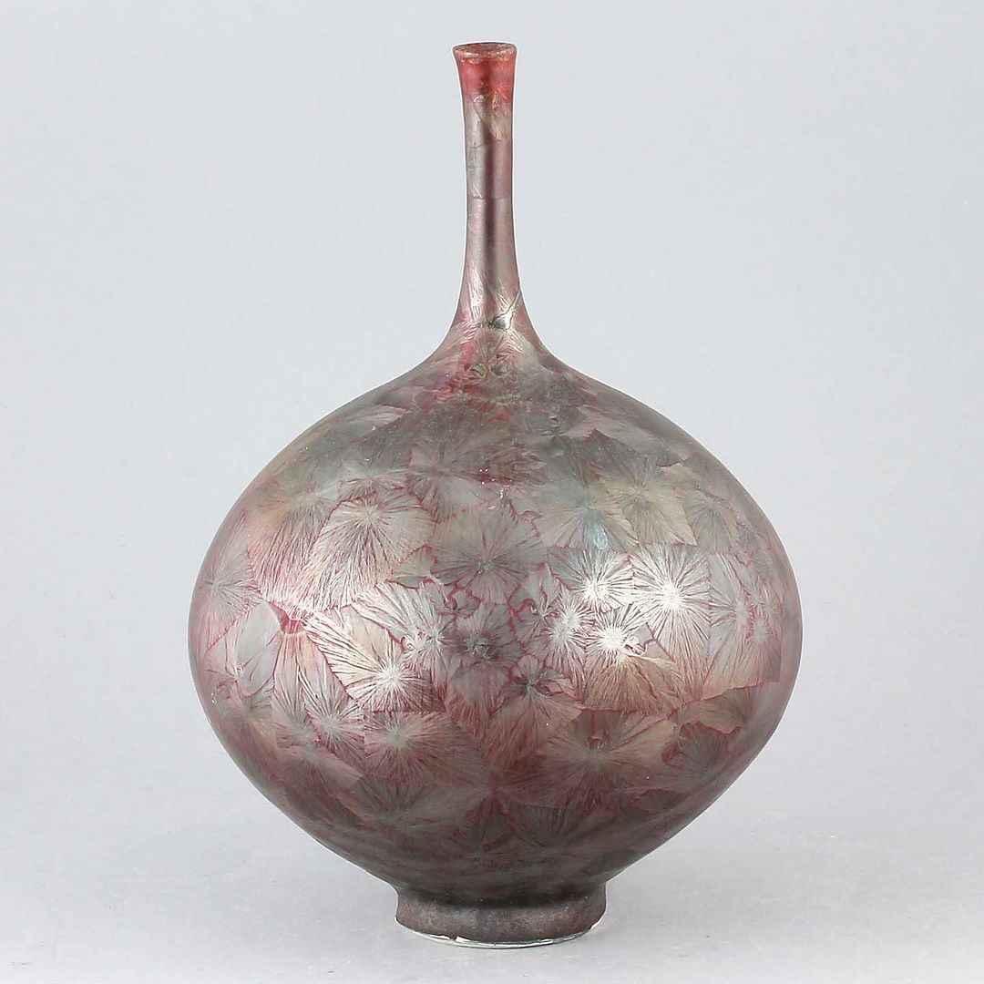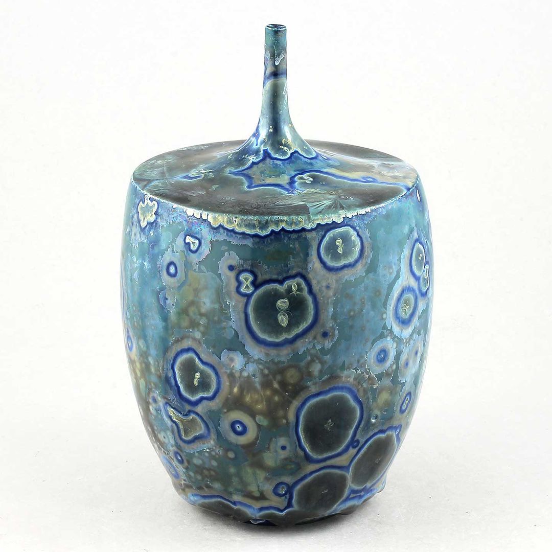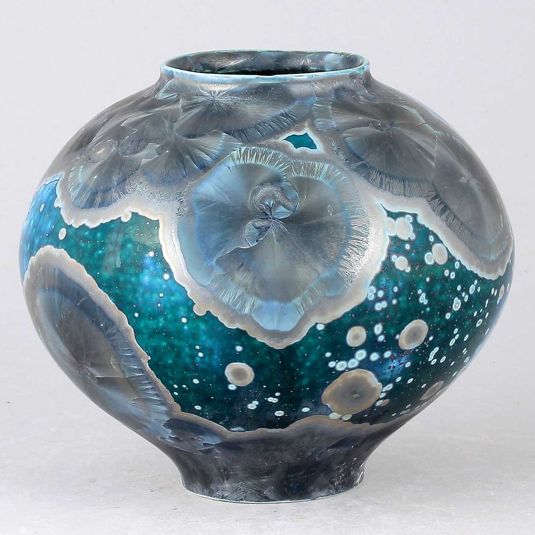 Isak Isakssson’s objects feature an interesting combination of classic, soft-spoken vessel shapes and unique, expressive crystalline glazes. The works are a result of a process that includes the ingredients of craftsmanship, artistic considerations, chemistry and fire. Here some examples of different shapes and glazes. More info about the specific crystalline glazes here.