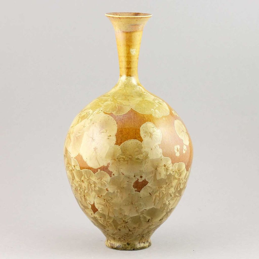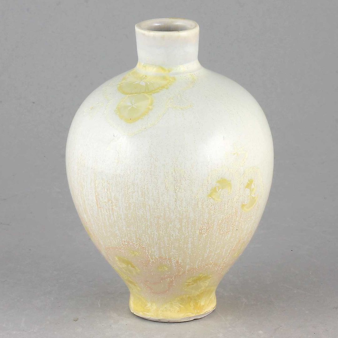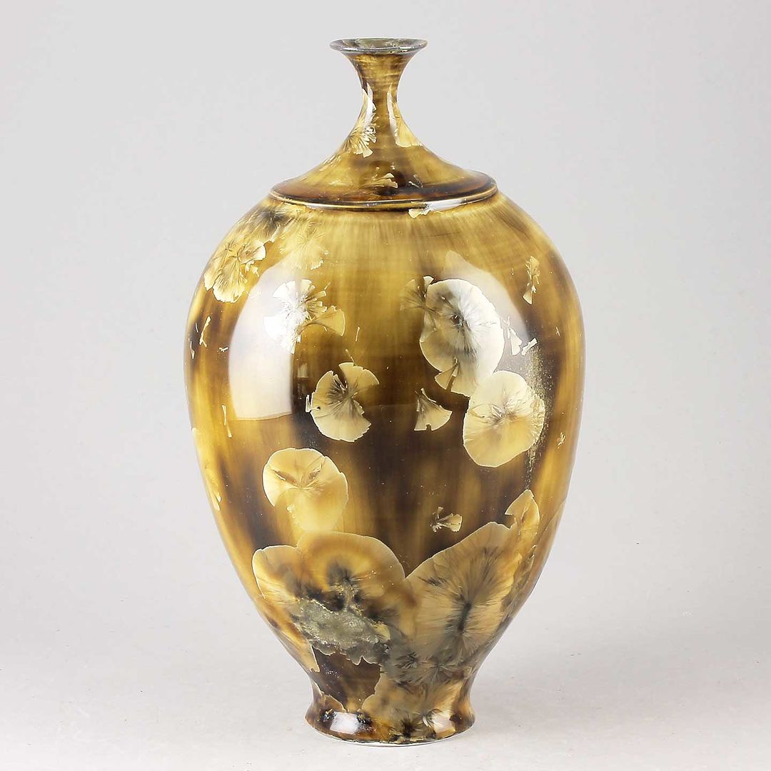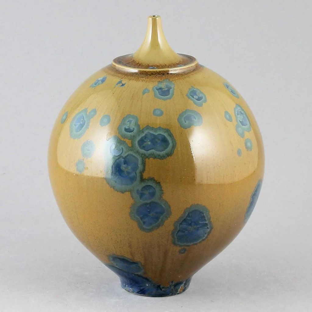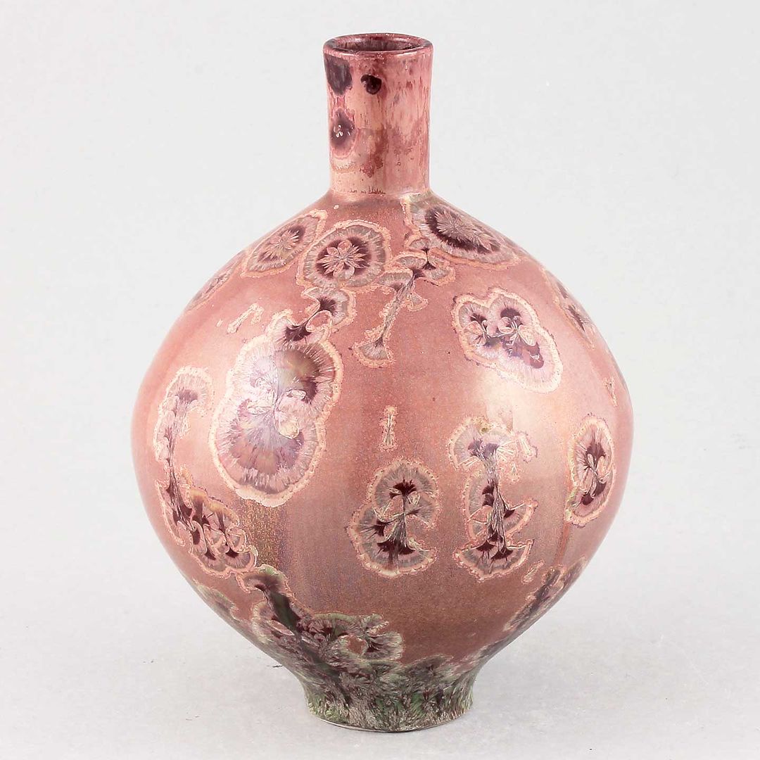 Isak Isakssson’s objects feature an interesting combination of classic, soft-spoken vessel shapes and unique, expressive crystalline glazes. The works are a result of a process that includes the ingredients of craftsmanship, artistic considerations, chemistry and fire. Here some examples of different shapes and glazes. More info about the specific crystalline glazes here.